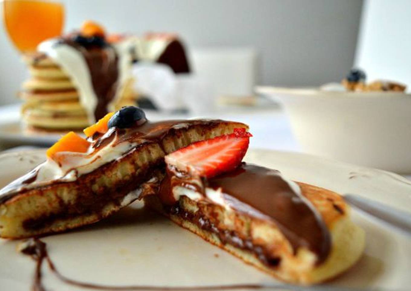 Pancakes o tortitas americanas rellenas de Nutella